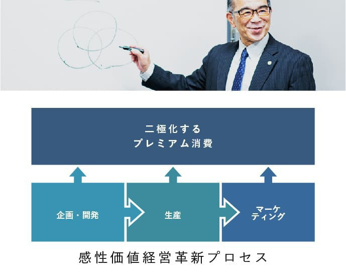 いいモノ・コトを企画・開発し、その感性価値を伝え、価値創造による需要創造によりクライアント企業を発展させ、社会に貢献する支援を行っていきます。
